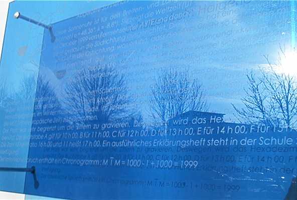 Haigerloch, explications gravées sur verre bleu, centre scolaire
